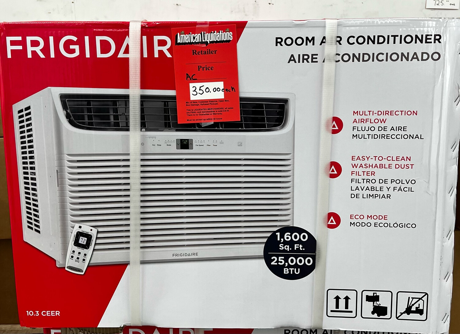 These Frigidaire ACs will surely cool a big room with ease. These monster ACs can cool up to 1,600 Square feet! These Items are not guaranteed to be new and can be anything. There are NO REFUNDS OR RETURNS. These pallets are pick up only at Liquidation Pallet located at Prospect CT! Frigidaire 25000 BTU Window AC.