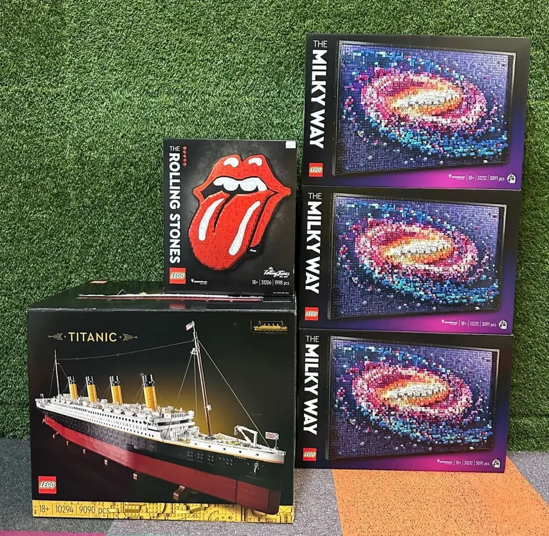 INCLUDE ALL THREE MILKY WAY, TITANIC AND ROLLING STONE LEGO SET
